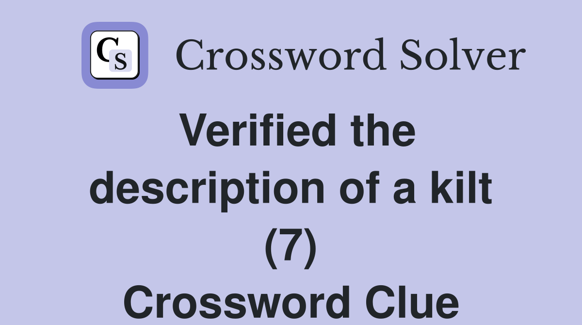 Web here is the answer for the crossword clue kilt pattern last seen in wall street journal puzzle. Web the crossword solver found 30 answers to kilt pattern, 11 letters crossword clue. Web here is the solution for the kilt's pattern clue featured in newsday puzzle on january 29, 2024. The crossword solver finds answers to classic crosswords and cryptic crossword puzzles.